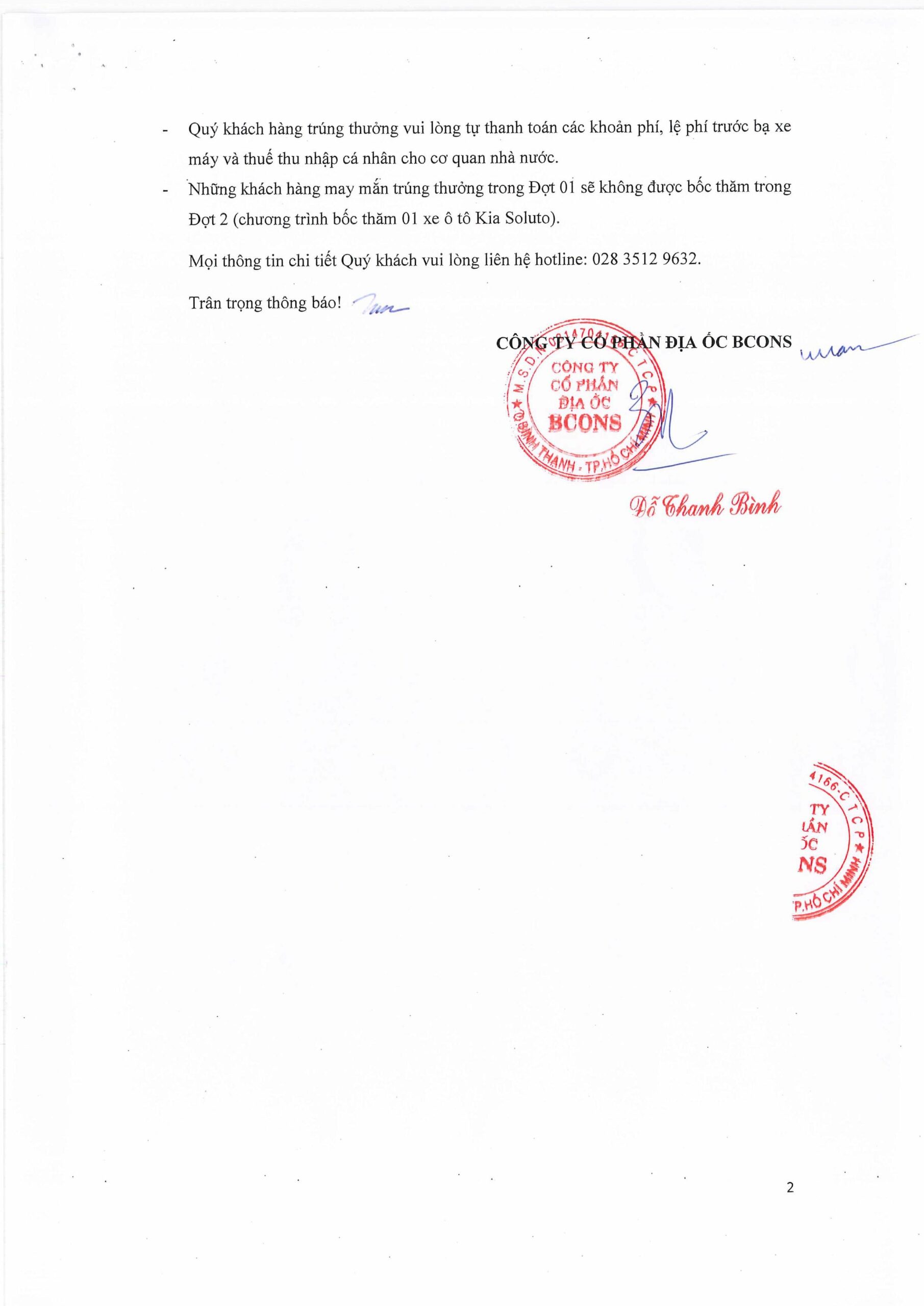 Tập đoàn Bcons thông báo công bố khách hàng trúng giải chương trình tri ân khách hàng thanh toán đúng tiến độ trong mùa dịch đối với dự án Bcons Garden và Bcons Green View – Đợt 1 – Bốc thăm trúng 02 xe máy Honda SH