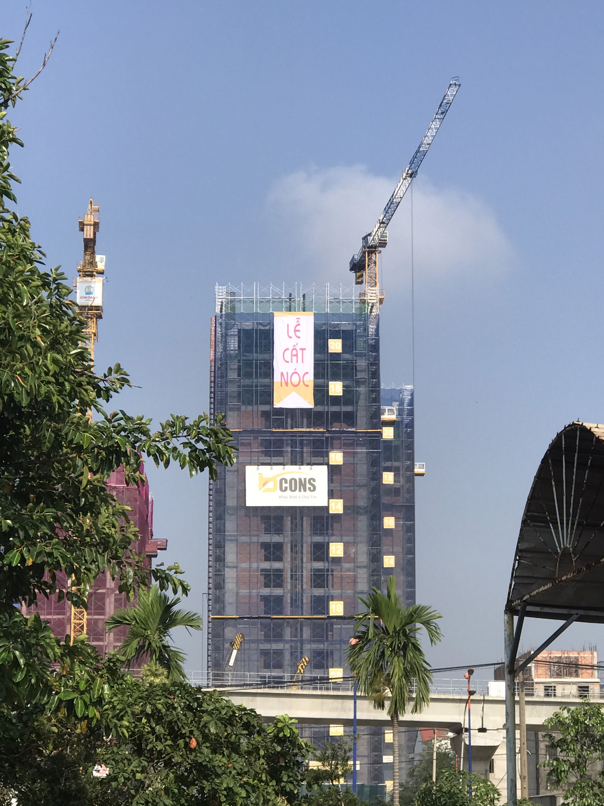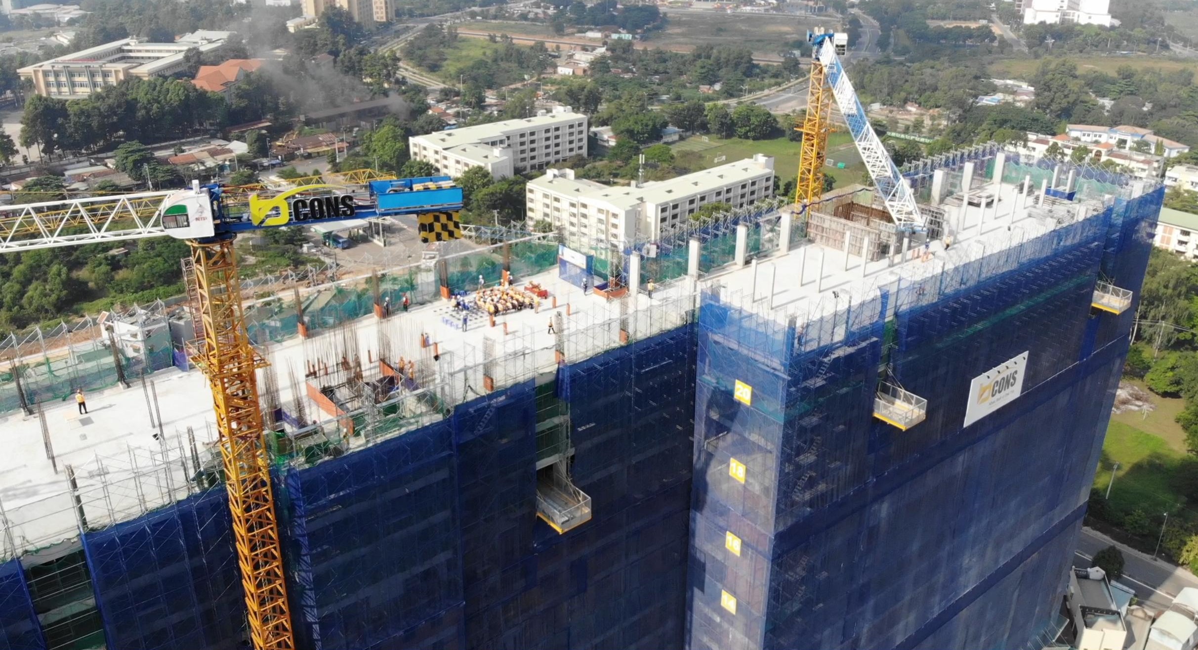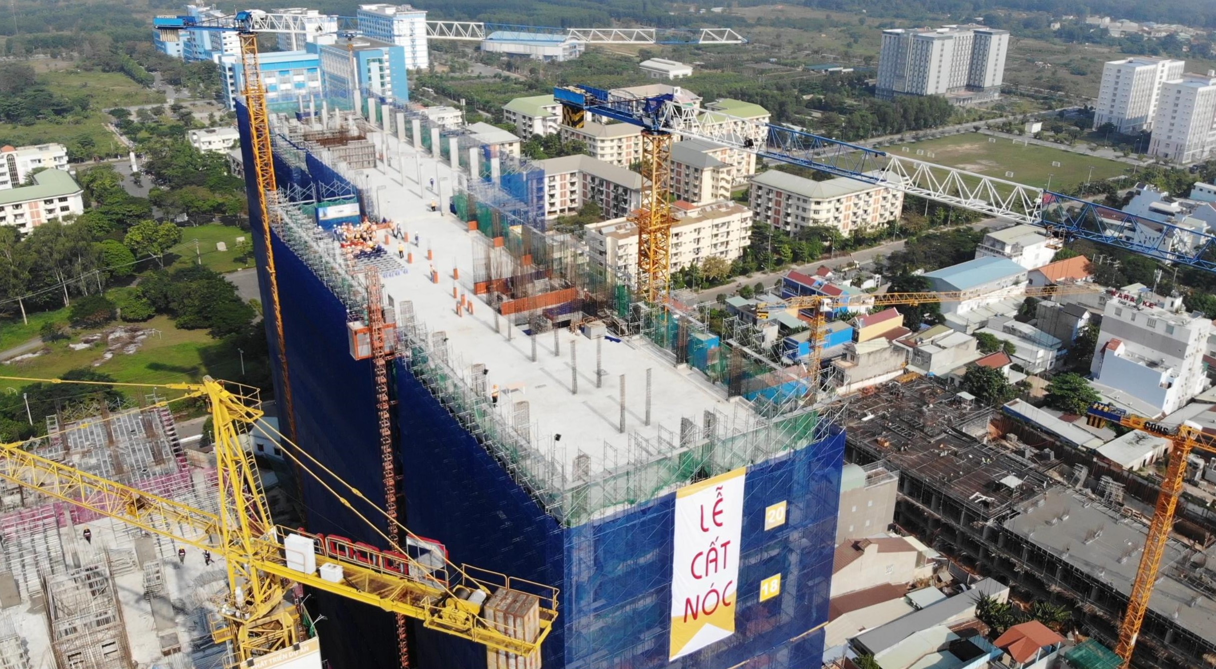 Toàn cảnh Chung cư Bcons trong lễ cất nóc, toàn cảnh phía sau là khu Đại học Quốc Gia TP. HCM