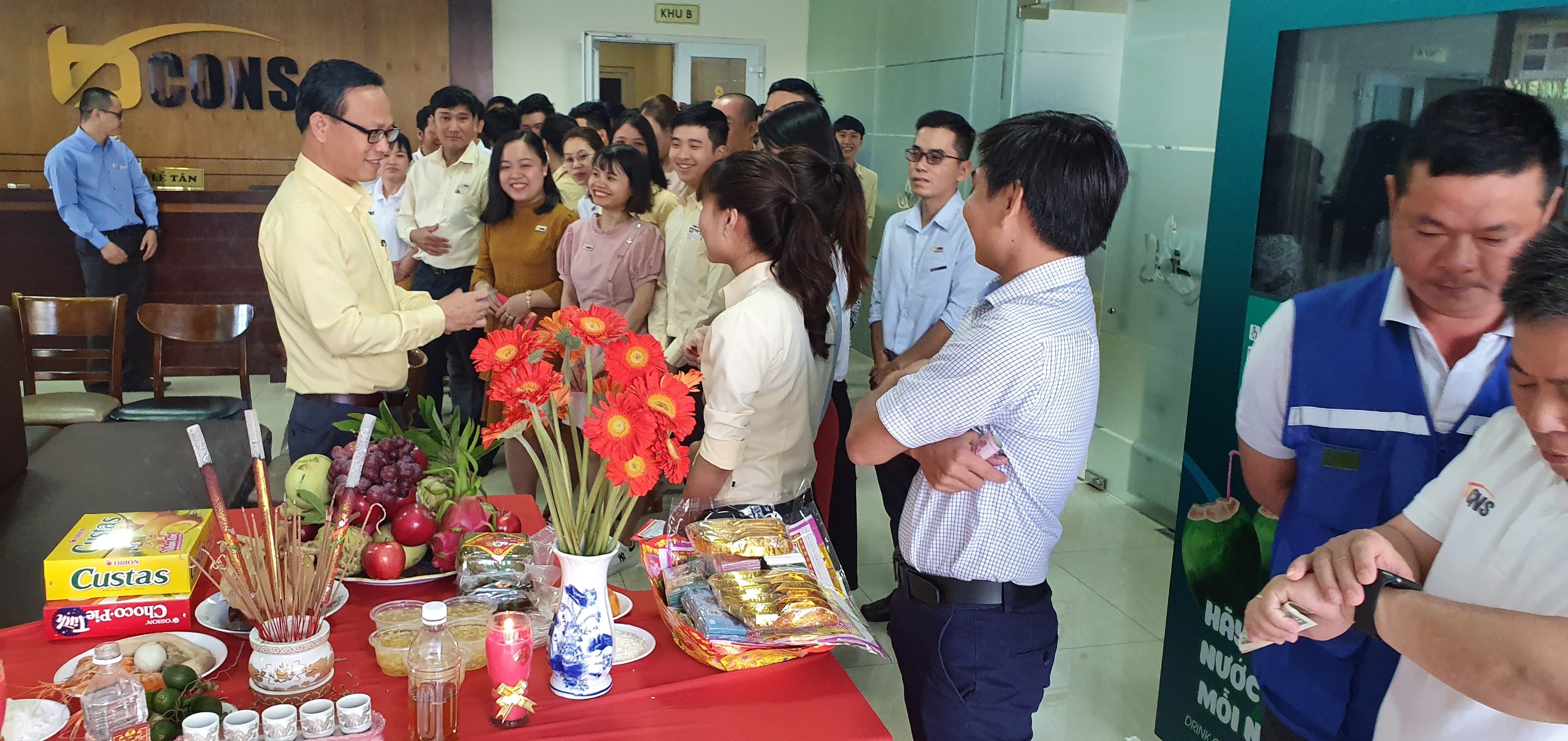Đã thành truyền thống tốt đẹp, buổi gặp mặt đầu năm là dịp để Ban Lãnh đạo và CBNV BCONS Group tề tựu, trao nhau những lời chúc tốt đẹp nhất trong năm mới. Thay mặt Ban lãnh đạo Công ty, Chủ tịch Lê Như Thạch có bài phát biểu khai xuân đầy ý nghĩa và những lời chúc tốt đẹp tới toàn thể nhân viên.