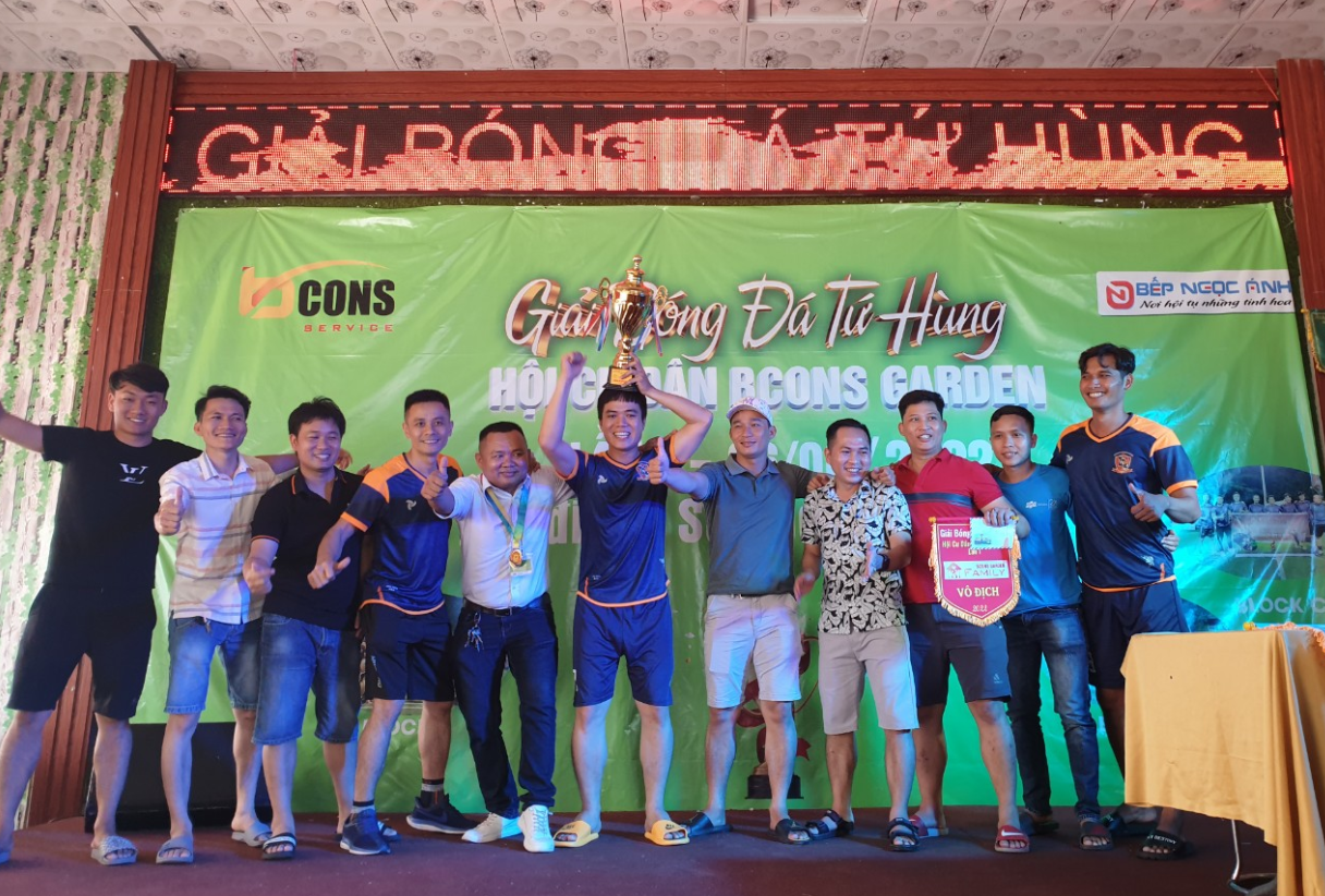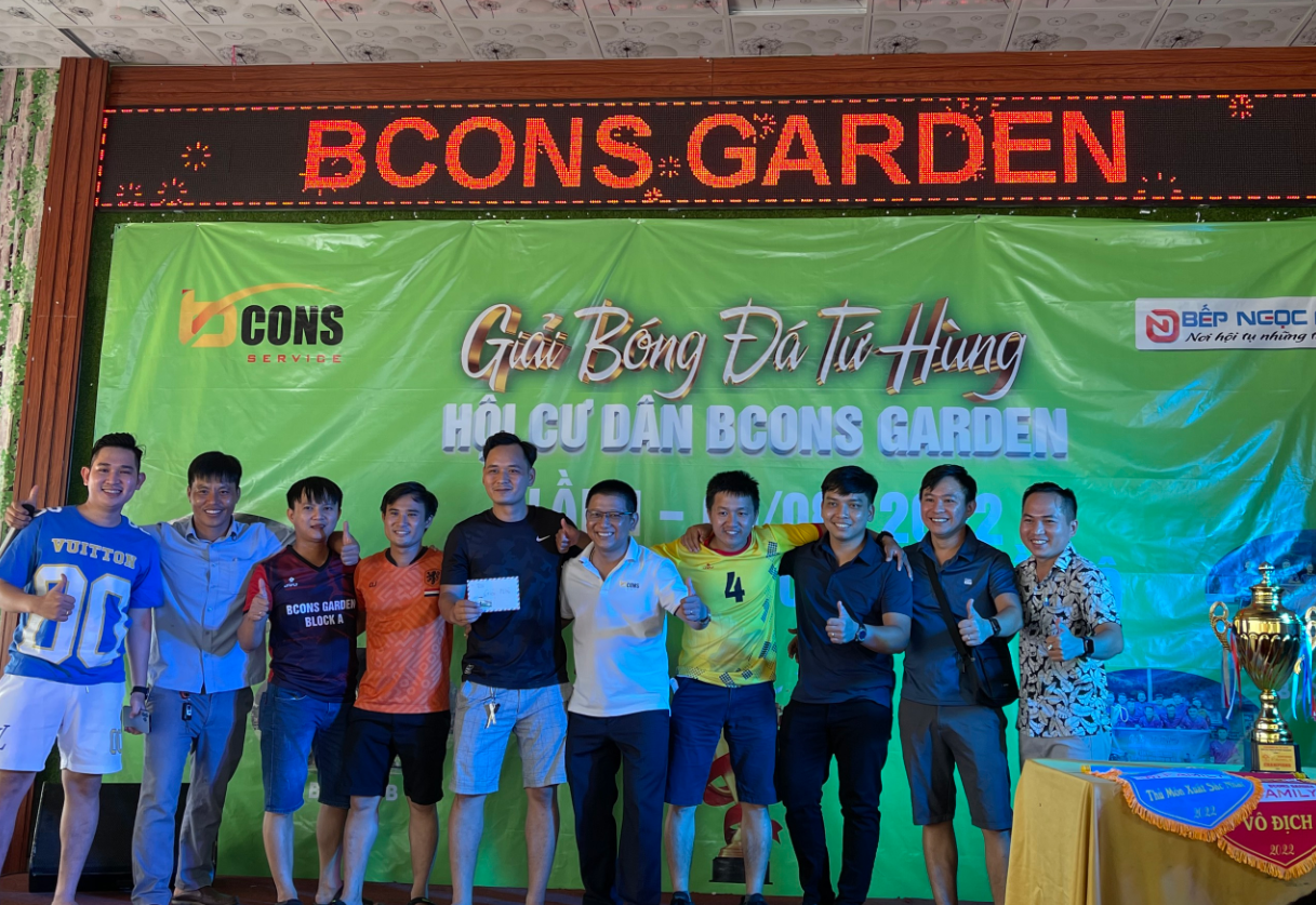 Sáng ngày 14/08/2022 vừa qua, Giải bóng đá Tứ Hùng Chung cư Bcons Garden lần thứ nhất đã tìm ra được nhà vô địch – Đội Block B, được tổ chức tại sân bóng đá Đề Pô, khu phố Thống Nhất 2, P. Dĩ An, TP Dĩ An, Tỉnh Bình Dương. Đây là hoạt động phong trào mang tính cộng đồng, với mục tiêu nhằm phát huy tinh thần thể thao, rèn luyện sức khỏe, đoàn kết và giao lưu giữa các cư dân đang sinh sống tại Chung cư Bcons Garden.