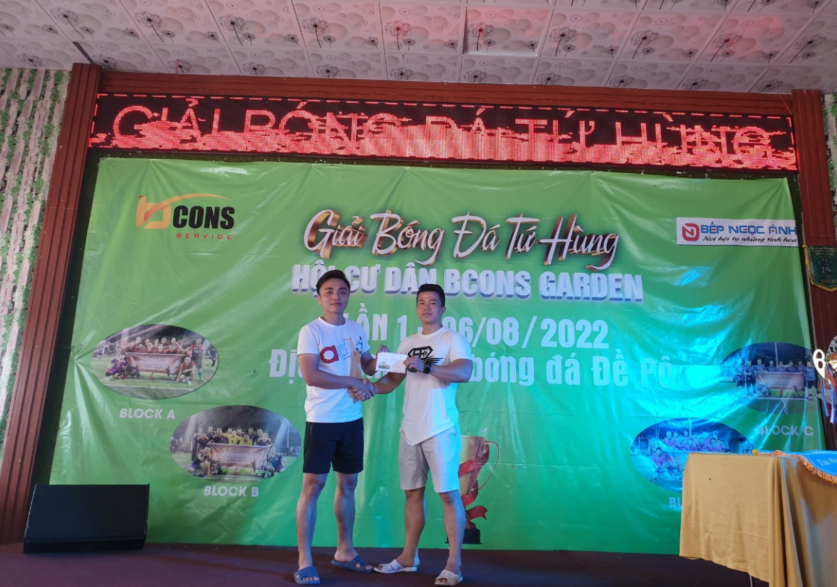 Bất chấp cái nắng gay gắt, các cầu thủ đều thi đấu nhiệt tình và hết mình, cống hiến cho khán giả những trận cầu hấp dẫn với nhiều pha bóng đẹp mắt. Sau những giây phút tranh tài gây cấn và kịch tính, chiếc cúp vàng của Giải bóng đá Tứ Hùng Chung cư Bcons Garden lần I đã gọi tên đội Block B, sau khi đã xuất sắc vượt qua đối thủ nặng ký là đội Block A ở vòng đấu cuối của giải đấu.