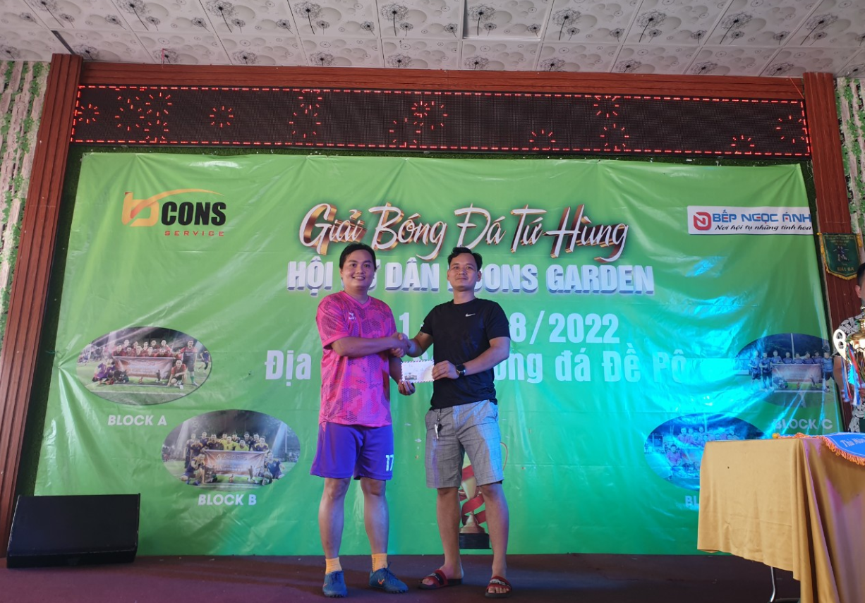 Cũng tại Lễ bế mạc, đại diện nhà tài trợ giải đấu, ông Lê Trọng Nghĩa – Phó Tổng Giám đốc Công ty Cổ phần Dịch vụ Bcons Service, đã trao giải cho các đội bóng cùng cá nhân thi đấu xuất sắc và có đôi lời chia sẻ: “Tập đoàn Bcons rất hân hạnh được tham gia tài trợ giải đấu. Thời gian tới, Bcons sẽ cùng với Ban tổ chức, lập kế hoạch và triển khai tổ chức các hội thao khác dành cho cả chị em phụ nữ như: đi bộ, bóng bàn, cầu lông. Về bộ môn bóng đá, Bcons nhiệt tình ủng hộ Ban tổ chức mở rộng và cam kết tài trợ cho giải đấu, nâng tầm quy mô giải đấu dành cho cư dân của những tòa nhà Chung cư mang thương hiệu Bcons trên địa bàn thành phố Dĩ An.”