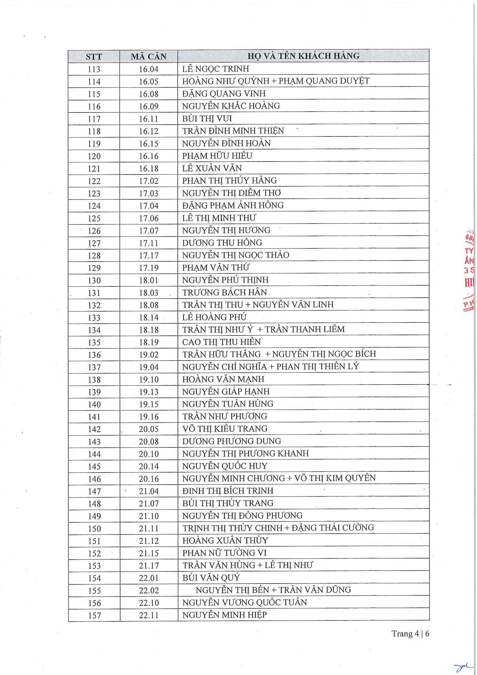 Công ty Cổ phần Bất động sản Phú Mỹ Hiệp xin trân trọng thông báo danh sách Khách hàng đã đủ điều kiện tham gia “Chương trình 1” bốc thăm may mắn “Nhận nhà mới đón quà xịn” theo thông báo từ Chủ đầu tư: