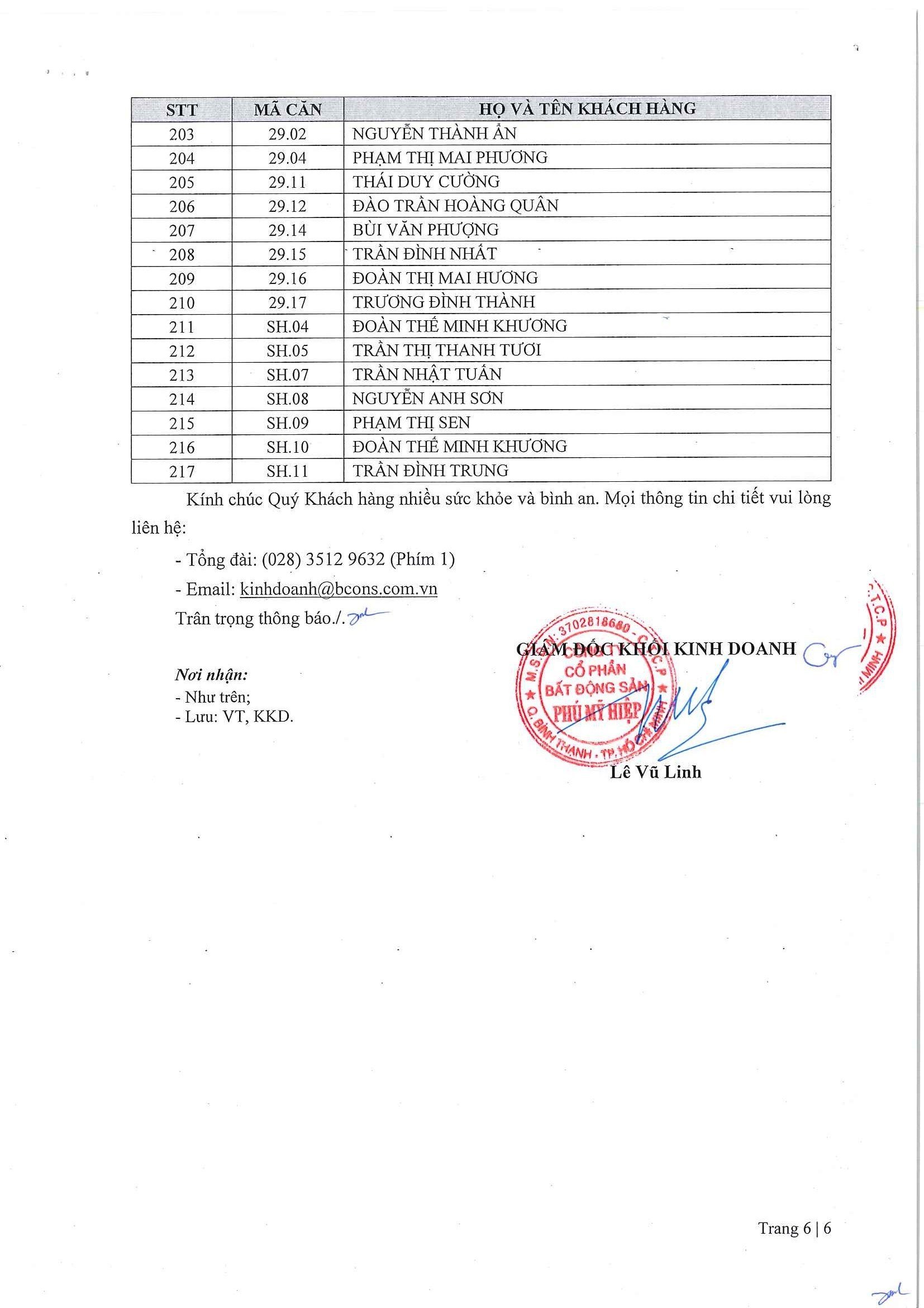 Kính gửi Quý Khách hàng sở hữu căn hộ dự án Bcons Sala,