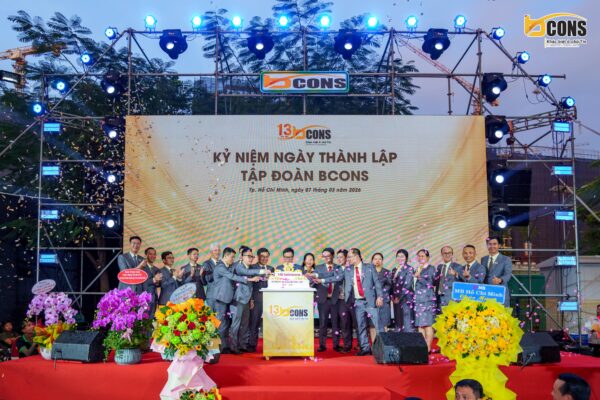 TP.HCM, ngày 08/03/2026, Tập đoàn Bcons đã tổ chức Lễ kỷ niệm Ngày thành lập Công ty (06/03/2013 – 06/03/2026) kết hợp chương trình tiệc đầu năm dành cho toàn thể cán bộ nhân viên. Buổi lễ có sự tham dự của Ban lãnh đạo, Hội đồng quản trị, đối tác và toàn thể cán bộ nhân viên. Đây là dịp để tập thể Bcons cùng nhìn lại hành trình hình thành và phát triển trong suốt 13 năm qua, đồng thời khởi động một năm mới với tinh thần đoàn kết và nhiều kỳ vọng mới.