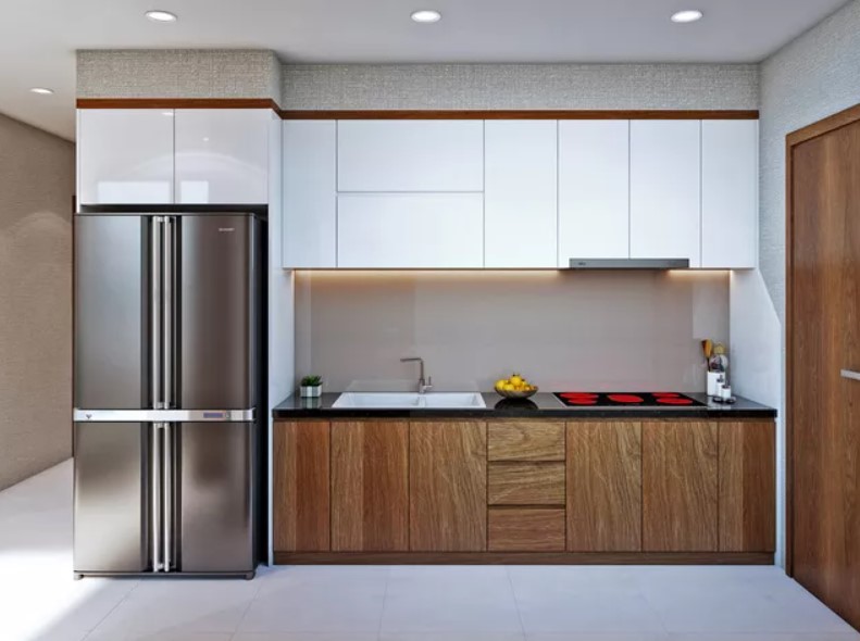 Căn hộ Bcons được trang bị sẵn tủ bếp trên, bếp dưới
