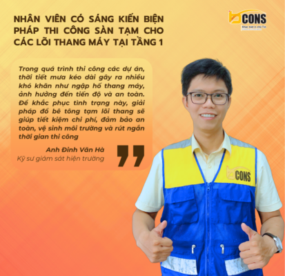 Một ý tưởng nhỏ, nhưng khi được nuôi dưỡng và phát triển đúng cách thì hoàn toàn có thể tạo ra những giá trị to lớn. Đó chính là câu chuyện của anh Đinh Văn Hà – Kỹ sư giám sát hiện trường với sáng kiến cải tiến phương pháp thi công sàn tạm tại dự án Bcons City, giúp Tập đoàn Bcons tiết kiệm hàng trăm triệu đồng.