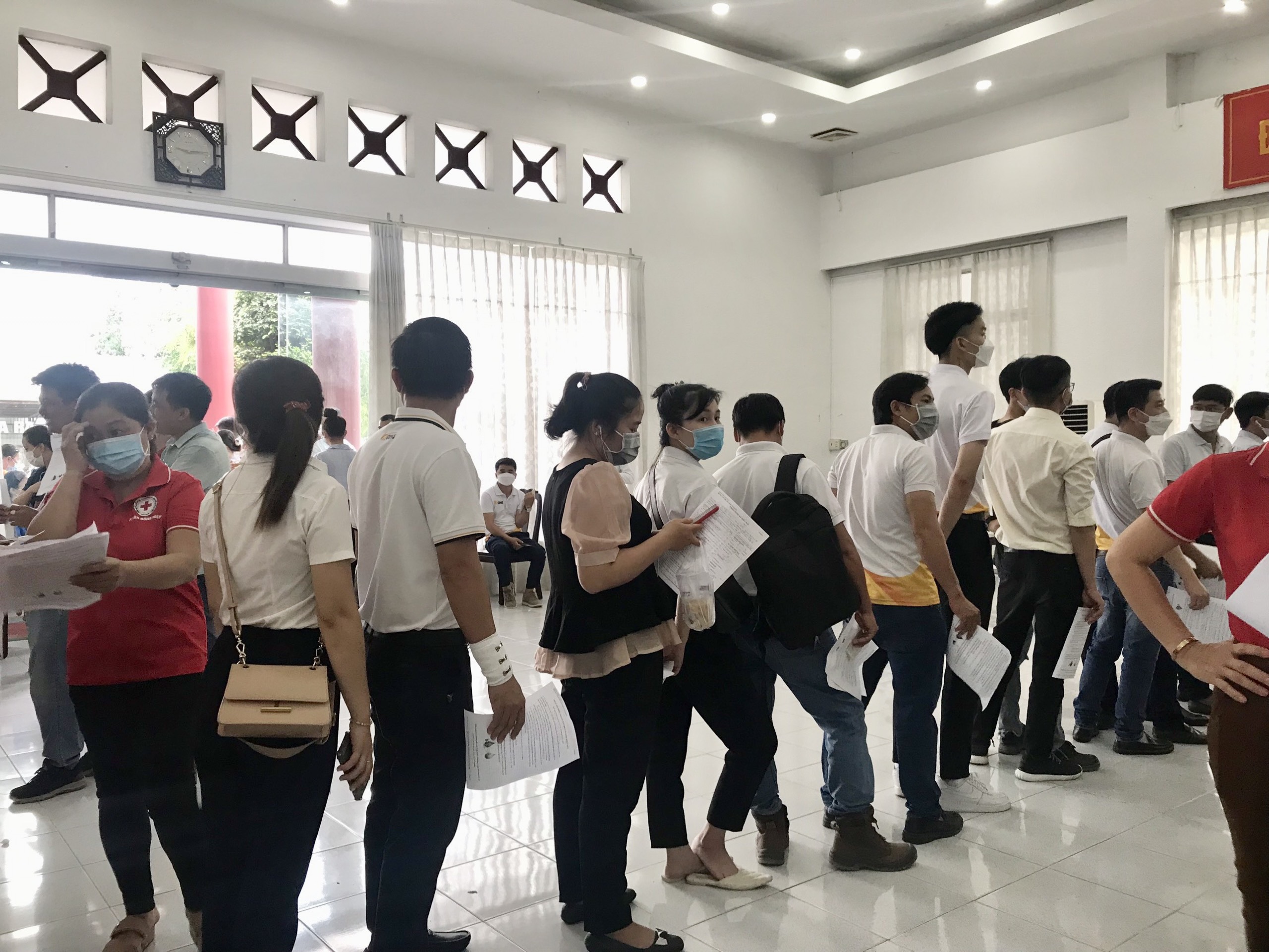 Ngay từ sáng sớm, các CBNV của Tập đoàn Bcons đã đến xếp hàng đứng chờ kiểm tra để lấy máu. Việc đo huyết áp, kiểm tra sức khoẻ cho từng CBNV trước khi hiến máu đã diễn ra đúng theo quy trình nhằm đảm bảo cho việc lấy máu được diễn ra thuận lợi.