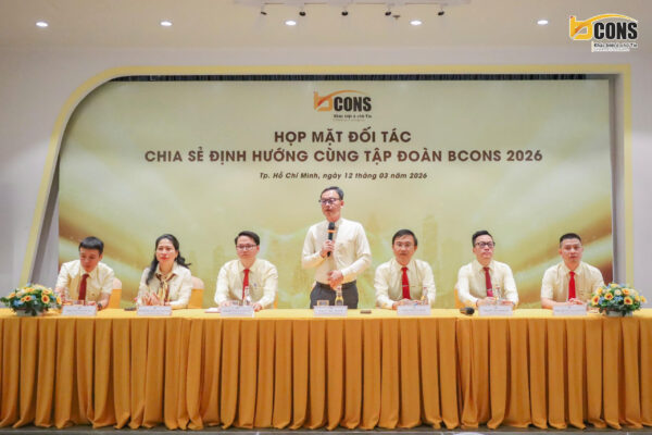TP.HCM, ngày 12/03/2026, Tập đoàn Bcons đã tổ chức buổi Họp mặt đối tác – Chia sẻ định hướng cùng Tập đoàn Bcons 2026 với sự tham dự của Ban lãnh đạo Tập đoàn cùng đông đảo các nhà thầu, đối tác đã và đang đồng hành trong quá trình phát triển của Bcons.
