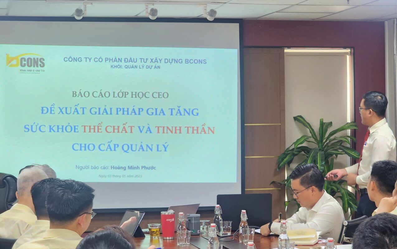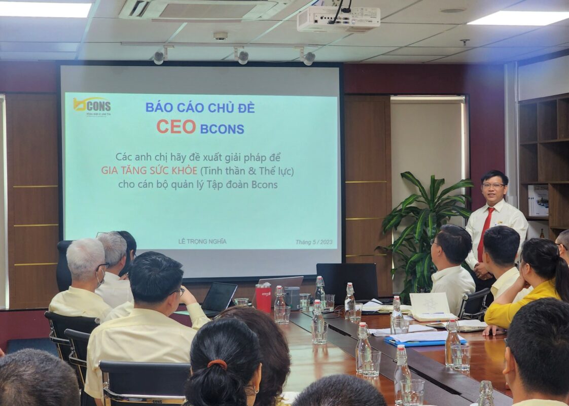 Bên cạnh việc khen thưởng CBNV xuất sắc, cuộc họp còn chú trọng vào việc trình bày các báo cáo của cấp quản lý về khóa học CEO với đề tài “Đề xuất giải pháp tăng cường sức khỏe (Tinh thần và Thể lực) cho cán bộ quản lý Tập đoàn Bcons”. Kết thúc báo cáo, ông Lê Trọng Nghĩa là người có báo cáo xuất sắc, nhận được đánh giá tích cực nhất và được nhận thưởng từ Ban Giám đốc Tập đoàn Bcons.