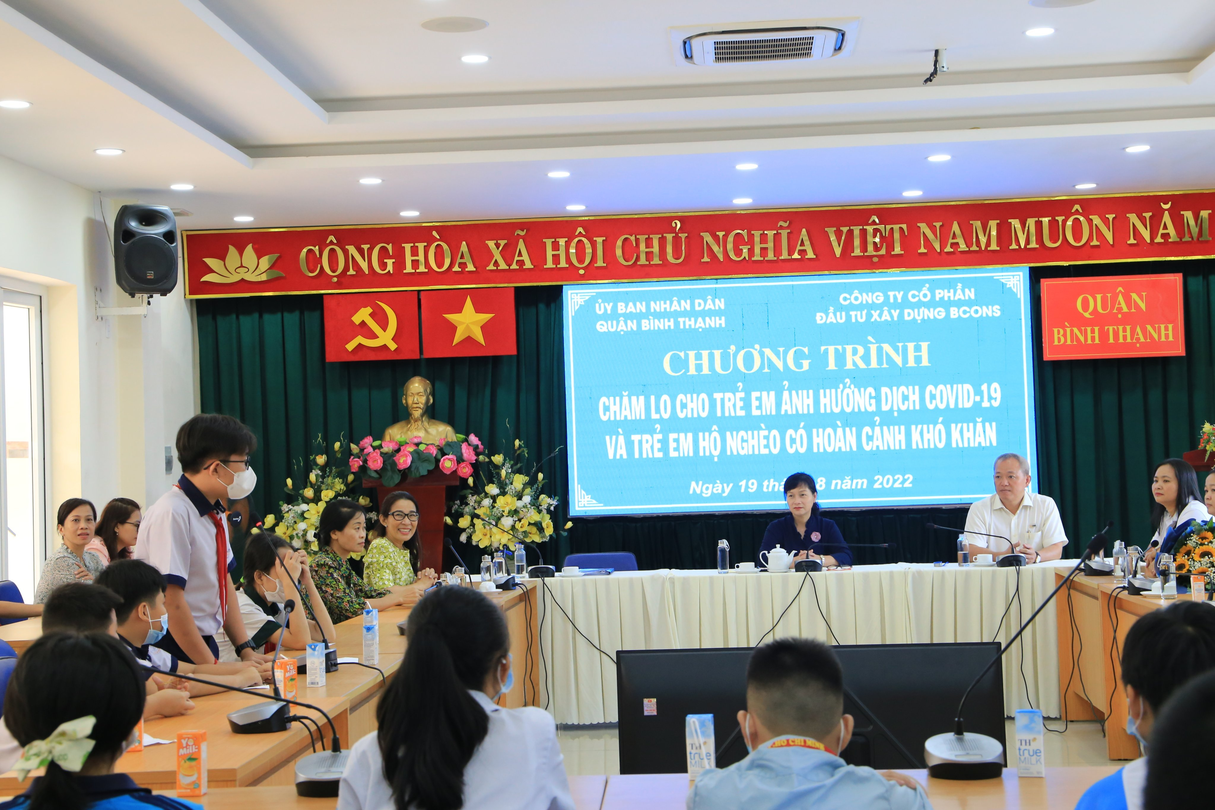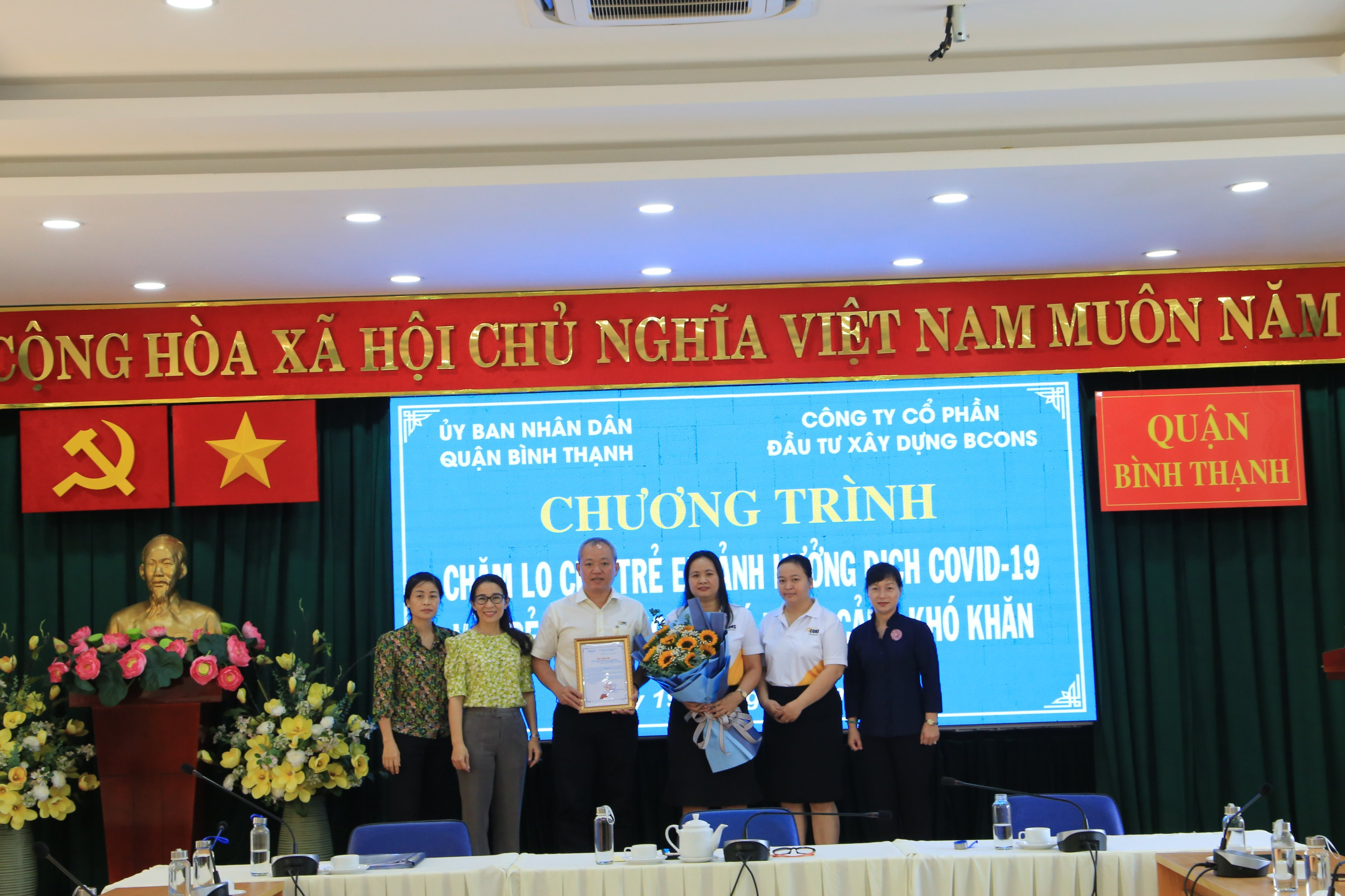 Ngày 19/8/2022 vừa qua, Tập đoàn Bcons cùng các đơn vị sàn phân phối Bcons PS, Sao Việt, Teraland phối hợp cùng Uỷ Ban Nhân dân Quận Bình Thạnh đã trao tặng 100 triệu đồng để chăm lo cho trẻ mồ côi bị ảnh hưởng bởi COVID-19 và các em diện hộ nghèo, có hoàn cảnh khó khăn trên địa bàn quận Bình Thạnh, TP HCM.