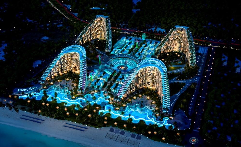 Ảnh phối cảnh The Arena Cam Ranh với 4 tòa condotel hình bán nguyệt