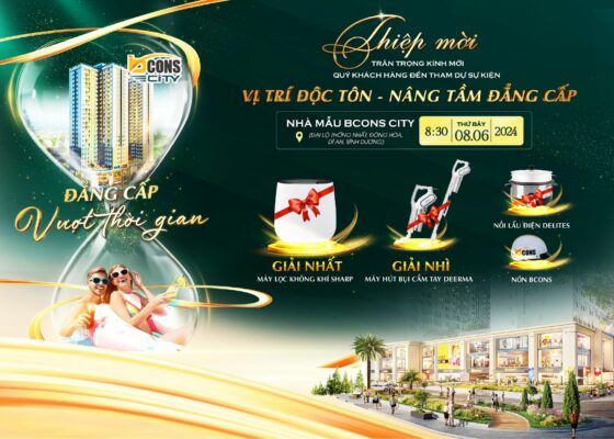 Chào mừng quý khách hàng đến tham quan trải nghiệm tháp “hoa hậu” đẹp nhất dự án Bcons City với vô vàn tiện ích bậc nhất và mang lại phong cách sống “Đẳng cấp vượt thời gian”. Đặc biệt, với sự kiện lần này, khách hàng không những được đến và cảm nhận tổ ấm tương lai của gia đình mà còn được bốc thăm trúng thưởng vô vàn phần quà hấp dẫn: