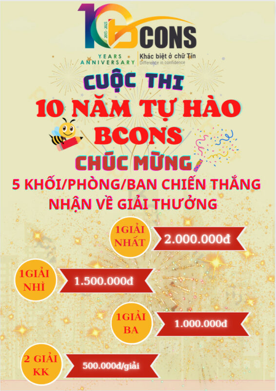 Cuộc thi “10 năm tự hào Bcons” được phát động từ ngày 14/02/2023 đến ngày 27/02/2023. Trong suốt quá trình diễn ra cuộc thi, BTC đã nhận được sự hưởng ứng rất nhiệt tình của các Khối/Phòng/Ban qua các bài viết gửi tâm tư, tình cảm dành cho Bcons cùng với những lượt tương tác trên Fanpage Tập đoàn.