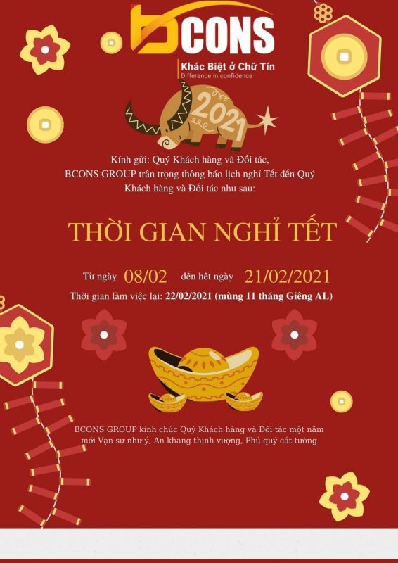 Thông báo thời gian nghỉ Tết âm lịch Tân Sửu năm 2021