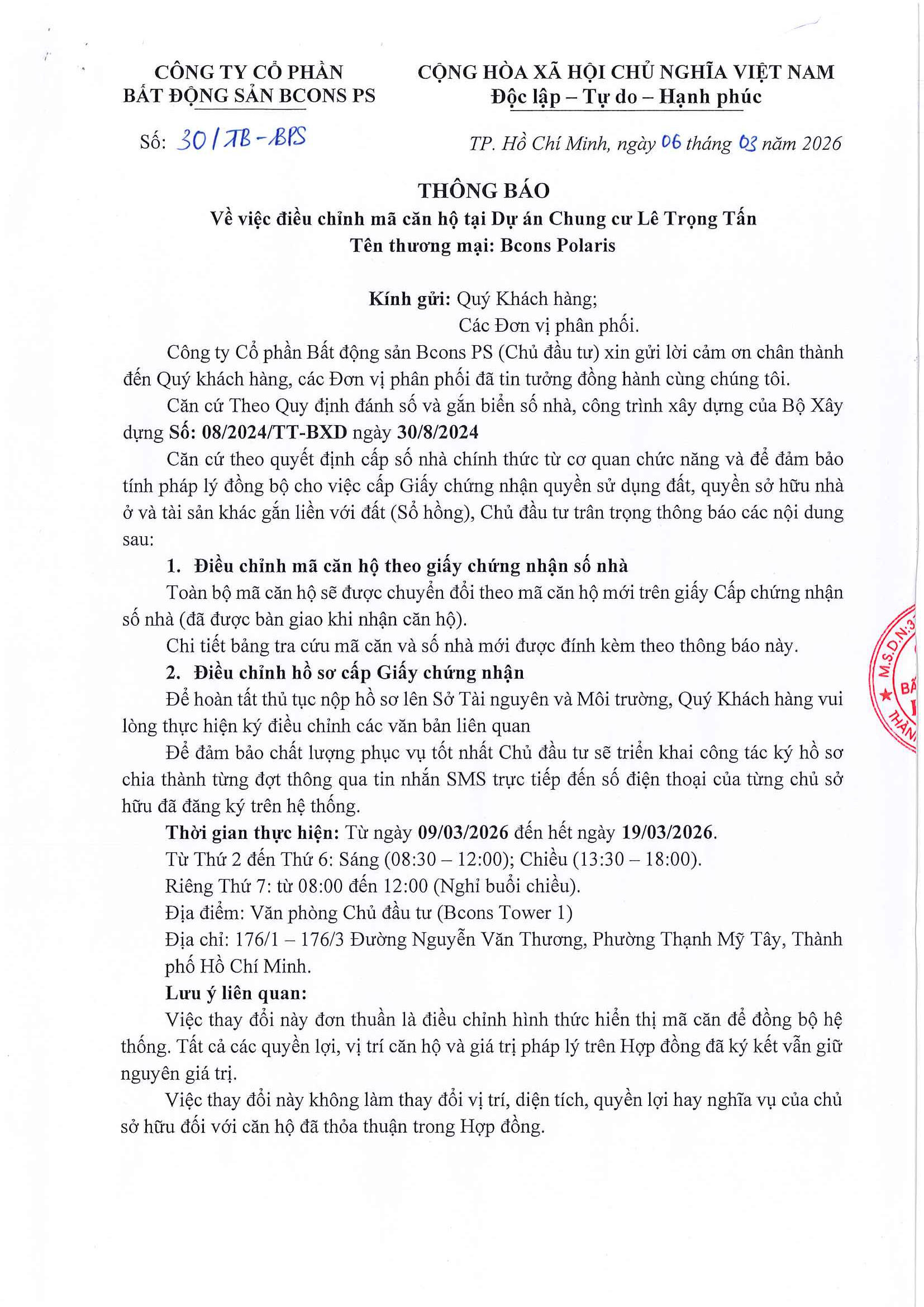 Tin tức, Tin tức dự án THÔNG BÁO VỀ VIỆC ĐIỀU CHỈNH MÃ CĂN HỘ TẠI DỰ ÁN CHUNG CƯ LÊ TRỌNG TẤN Posted on 12 Tháng Ba, 2026 by LÊ NGỌC TRÂM