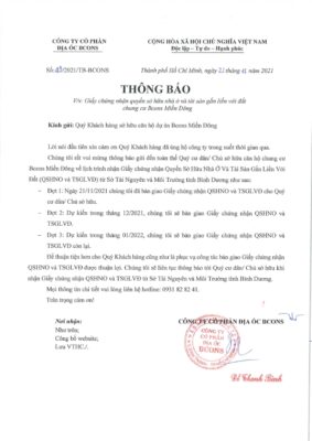 Kính gửi: Quý khách hàng, Lời đầu tiên, Tập đoàn Bcons xin chân thành ...