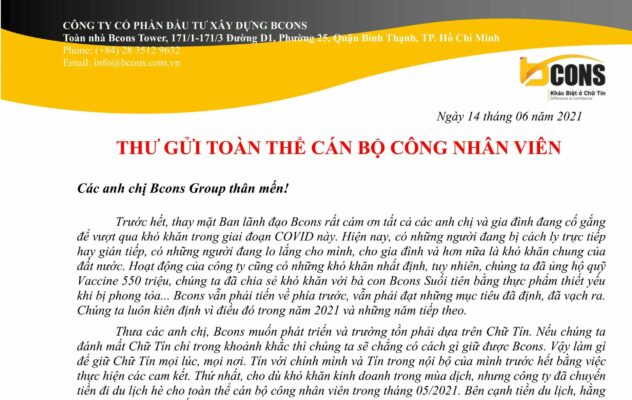 Các anh chị Bcons Group thân mến! Trước hết, thay mặt Ban lãnh ...
