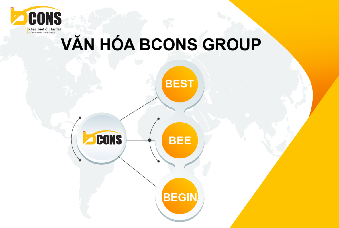 Từ những ngày đầu thành lập, người sáng lập đã quyết tâm xây dựng môi trường làm việc chuẩn mực bằng cách ban hành những quy trình và quy định để theo thời gian, từng bước hình thành Văn hóa Bcons. Ngoài những chuẩn mực của xã hội được quy định về thói quen và ứng xử áp dụng trong công việc nội bộ cũng như với các đối tác, Bcons tạo ra sự khác biệt về văn hóa so với các tập đoàn công ty khác đó là triết lý trong chữ “ B” của thương hiệu Bcons.
